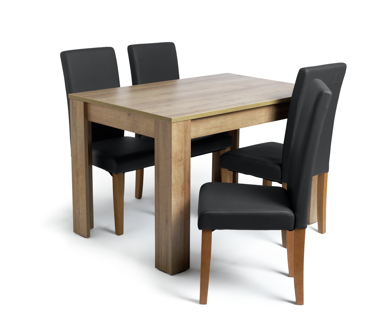 Argos Home Miami Oak Effect Dining Table 4 Black Chairs 8547840