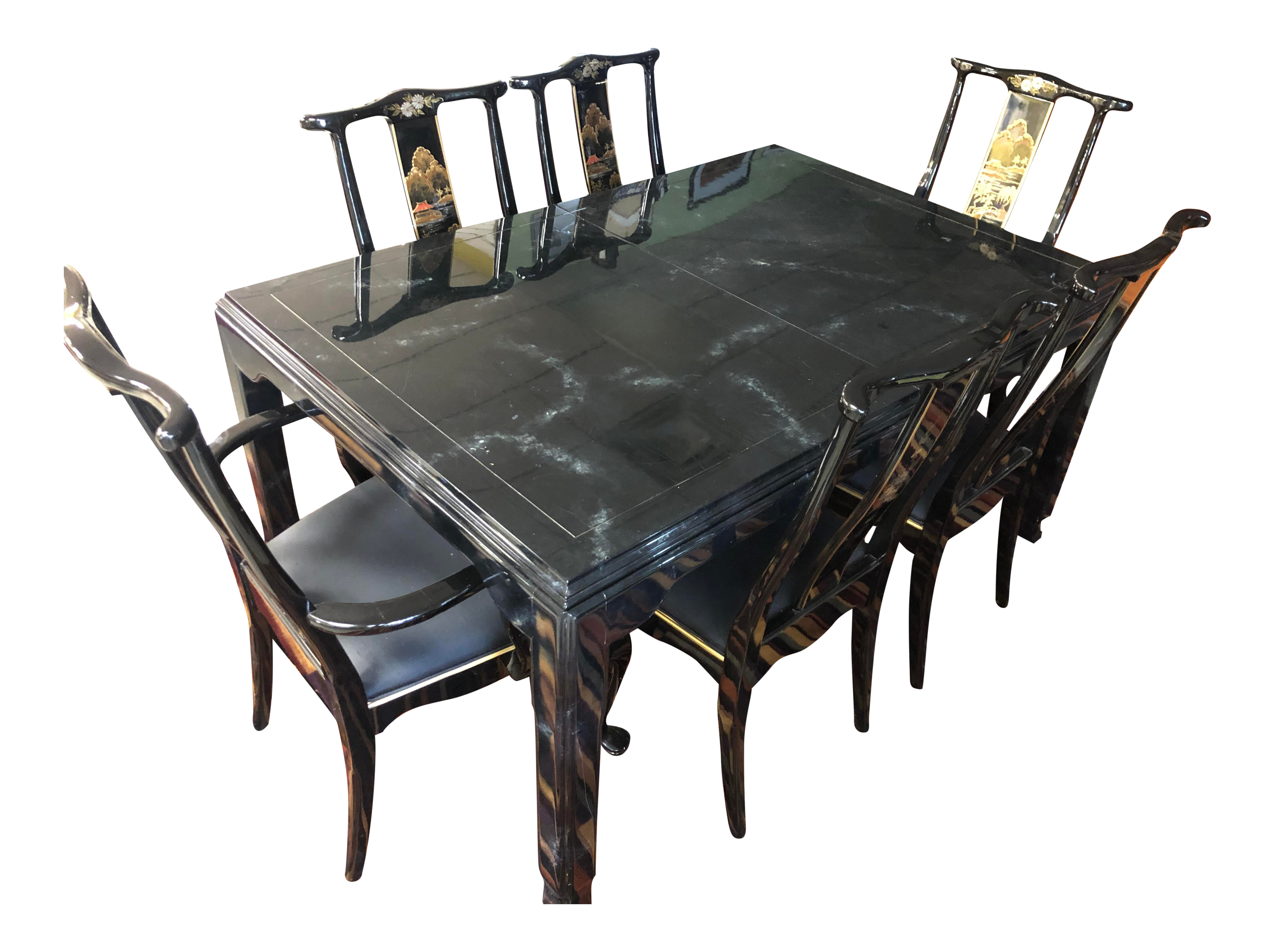 Century Furniture Black Lacquer Asian Dining Set Chairish