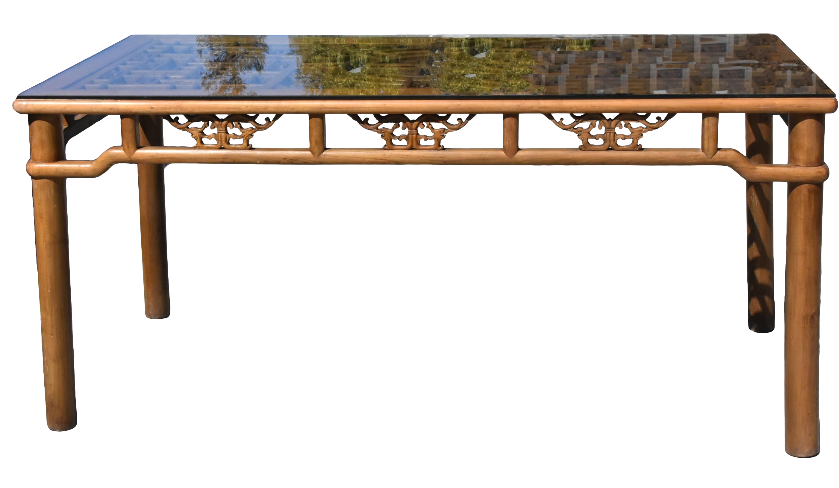 Gorgeous Asian Dining Room Table Hand Carved Leafing And Glass