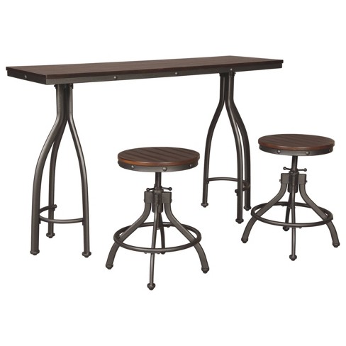 Bar dining room set. Table and stool tops feature a planked effect. O k furniture 5 piece dining room table set bar pub table set industrial style counter height kitchen table with 4 backless bar stools for dining area gray brown finish. Bar counter height dining sets.