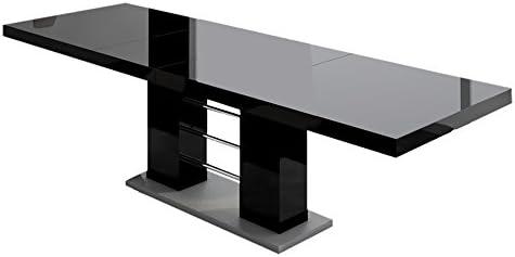 Modern Black High Gloss Extending Dining Table Brushed Steel Base