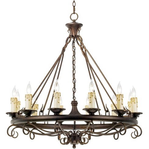 Franklin Iron Works Bronze Large Wagon Wheel Chandelier 36 Wide