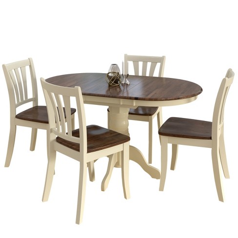 Oak Finish 5 Piece Dining Room Set Home Kitchen Furniture Cream