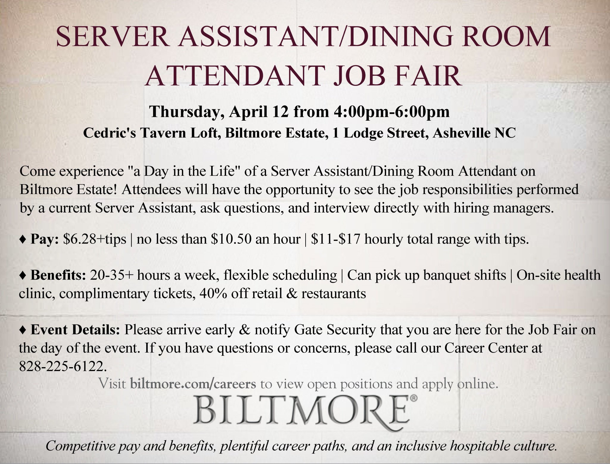 Server Assistant Dining Room Attendant Job Fair Biltmore Avltoday