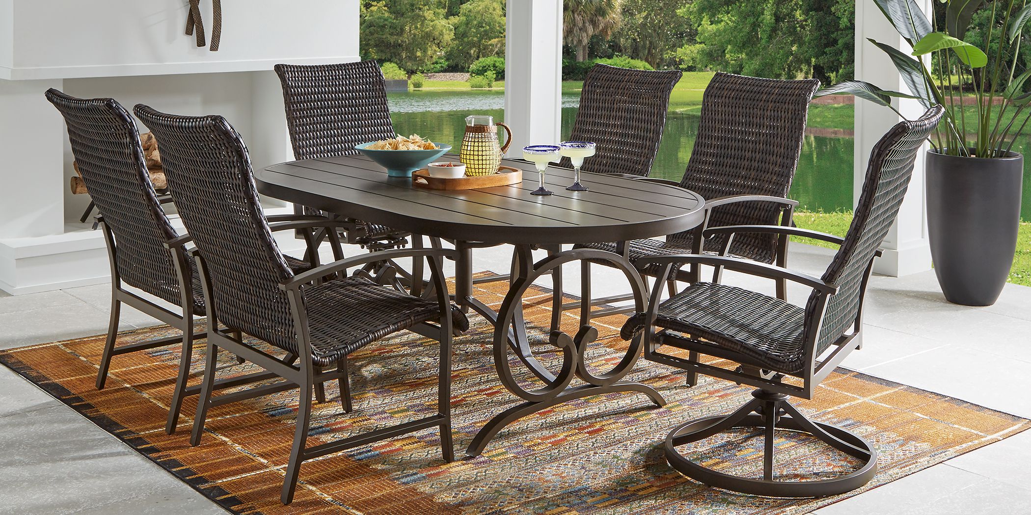 Bermuda Breeze Aged Bronze 7 Pc Outdoor 74 In Oval Dining Set