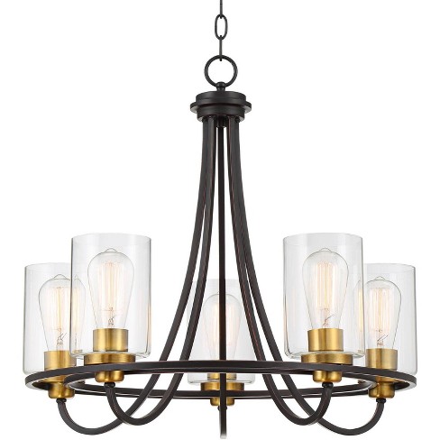 Possini Euro Design Oil Rubbed Bronze Chandelier 23 Wide Modern Industrial Clear Glass 5 Light Fixture Dining Room