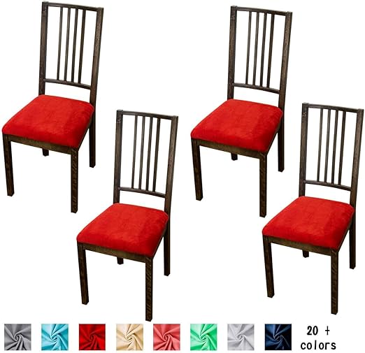 Comqualife Soft Velvet Dining Chair Seat Covers Stretchable