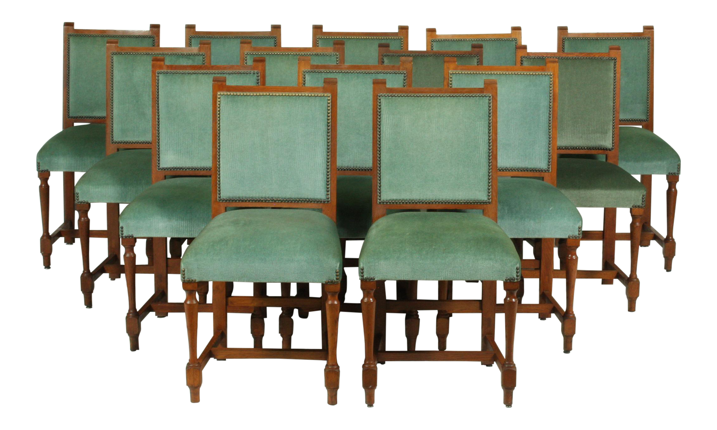 Vintage Set Of 14 French Mission Oak Refectory Dining Room Chairs