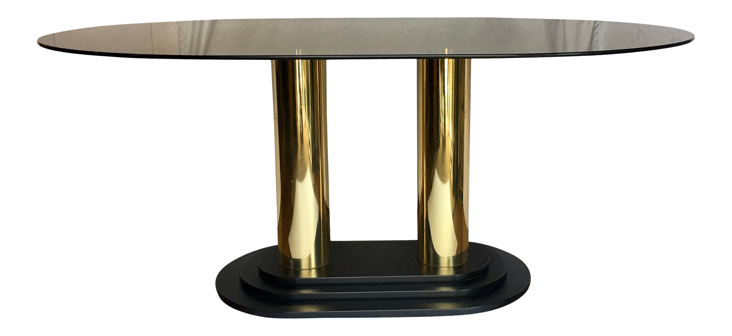 1980s Art Deco Style Oval Smoked Glass And Brass Pedestal Column