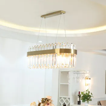 Rectangle Crystal Gold Chandeliers Dining Room Modern Indoor