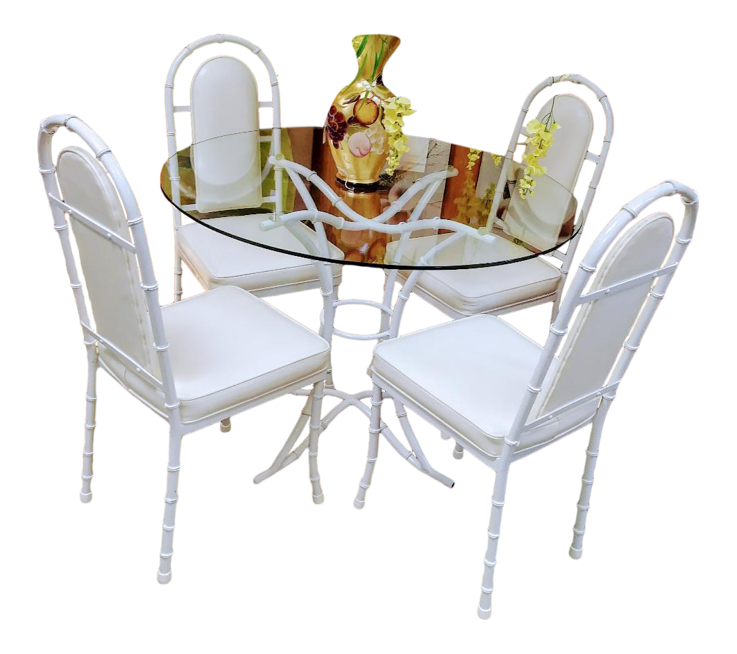 6 Piece Vintage Kessler Iron Faux Bamboo Patio Outdoor Dining Room