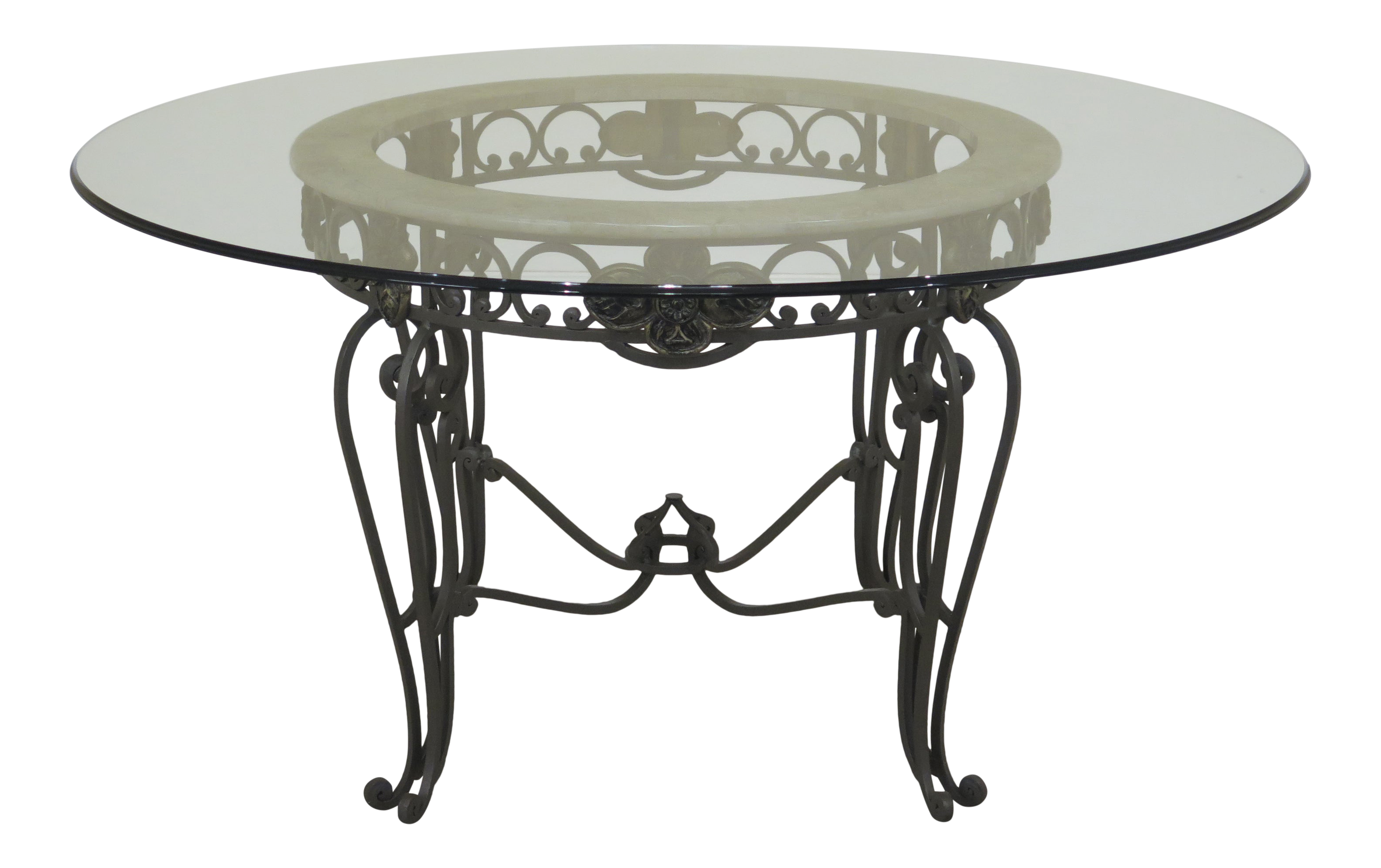 1990s Traditional Iron Base Glass Top Round Dining Room Table