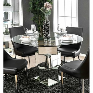 Furniture Of America Dilton Glass Top Mirrored Dining Table In