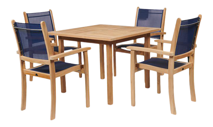 Pearl 5 Piece Teak Square Table Outdoor Dining Set In Blue Chairish