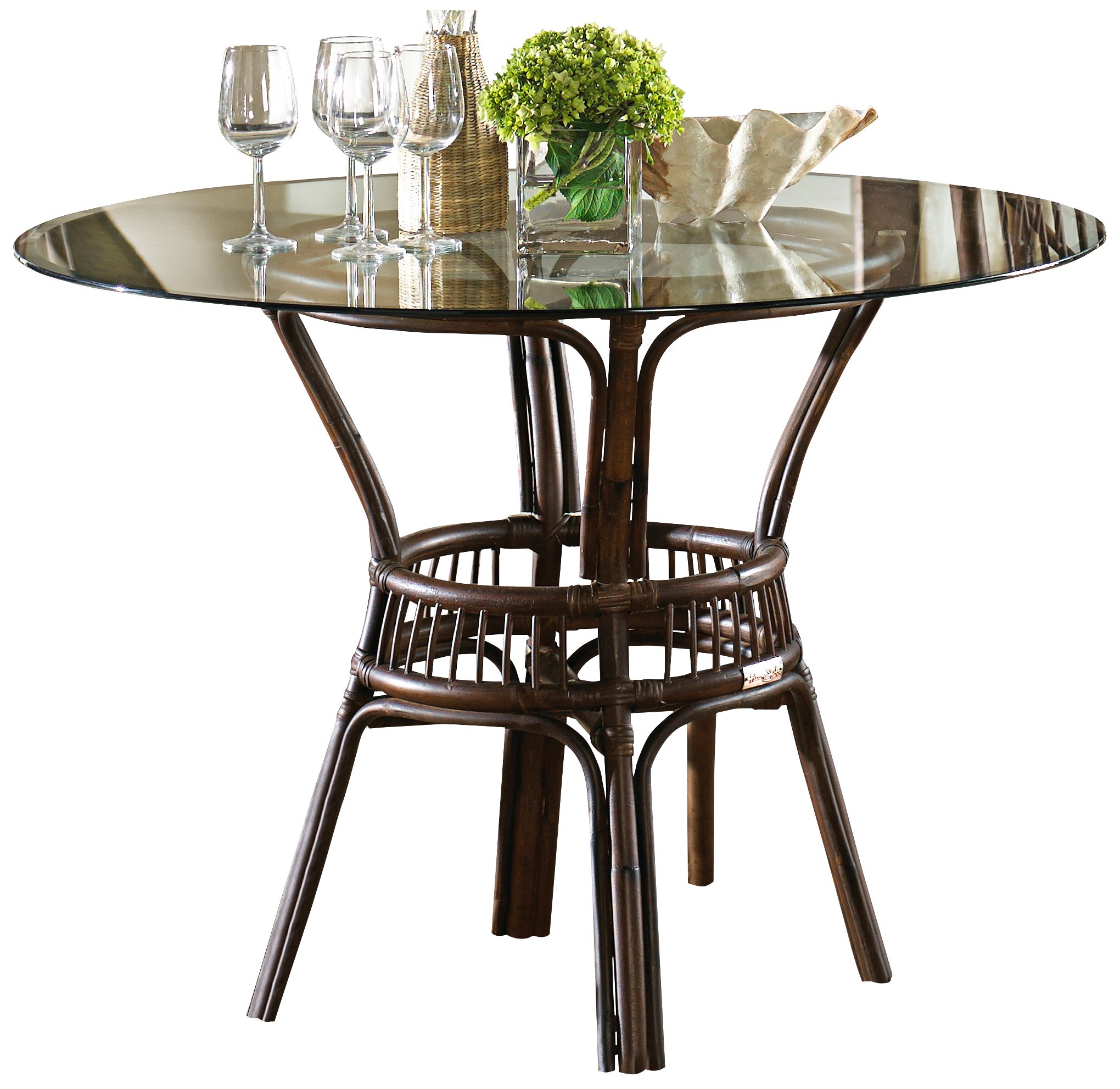 Pole Rattan 54 Round Dining Table With Glass Top