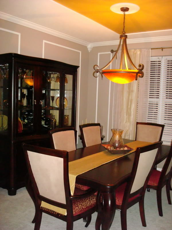 Dining Room Red Paint Wainscotting Crown Molding Gold