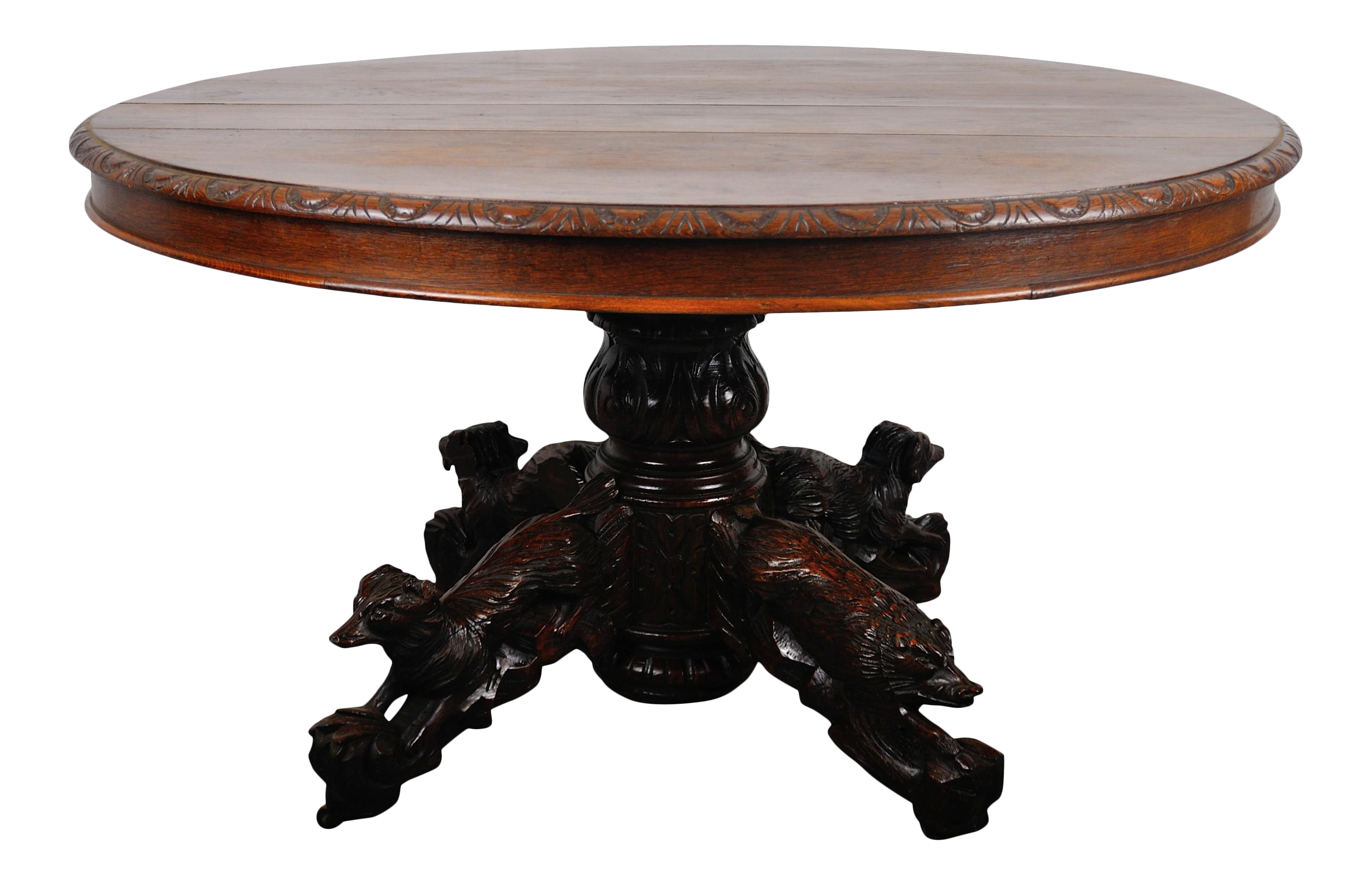 1890 S Antique Henri Ii Oak Round Extendable Carved Dining Table