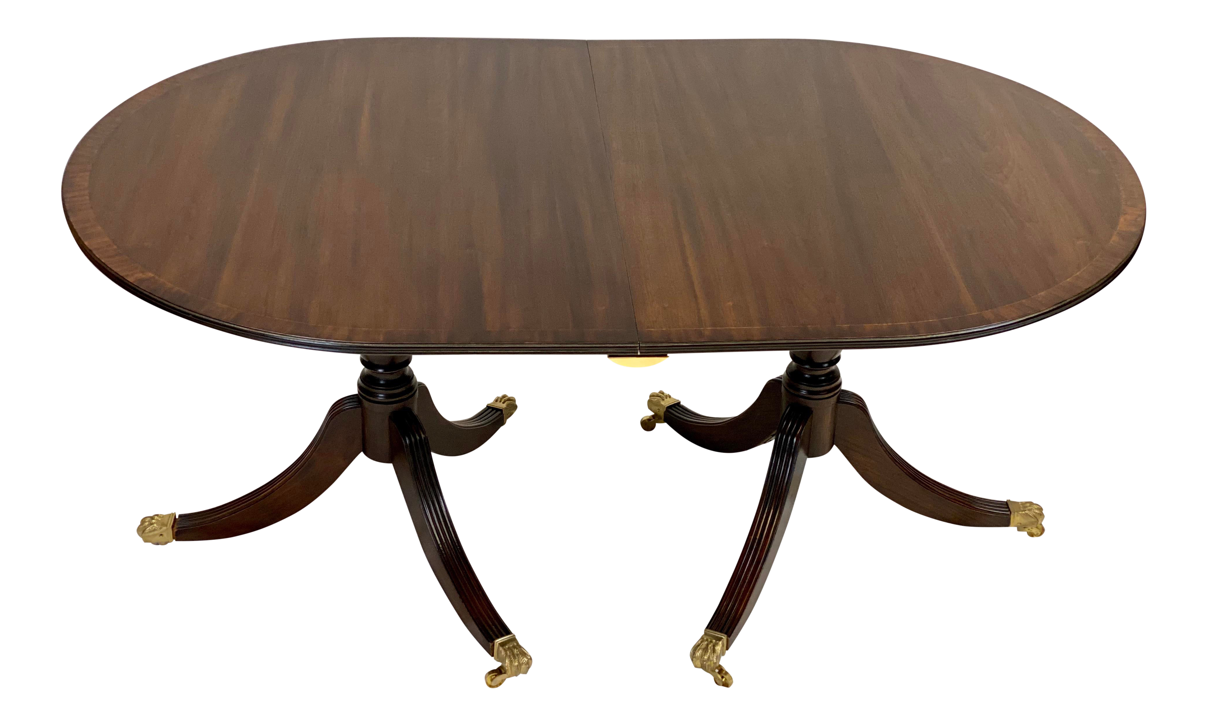 Solid Mahogany Sheraton Style 2 Pedestal 2 Leaf Dining Table