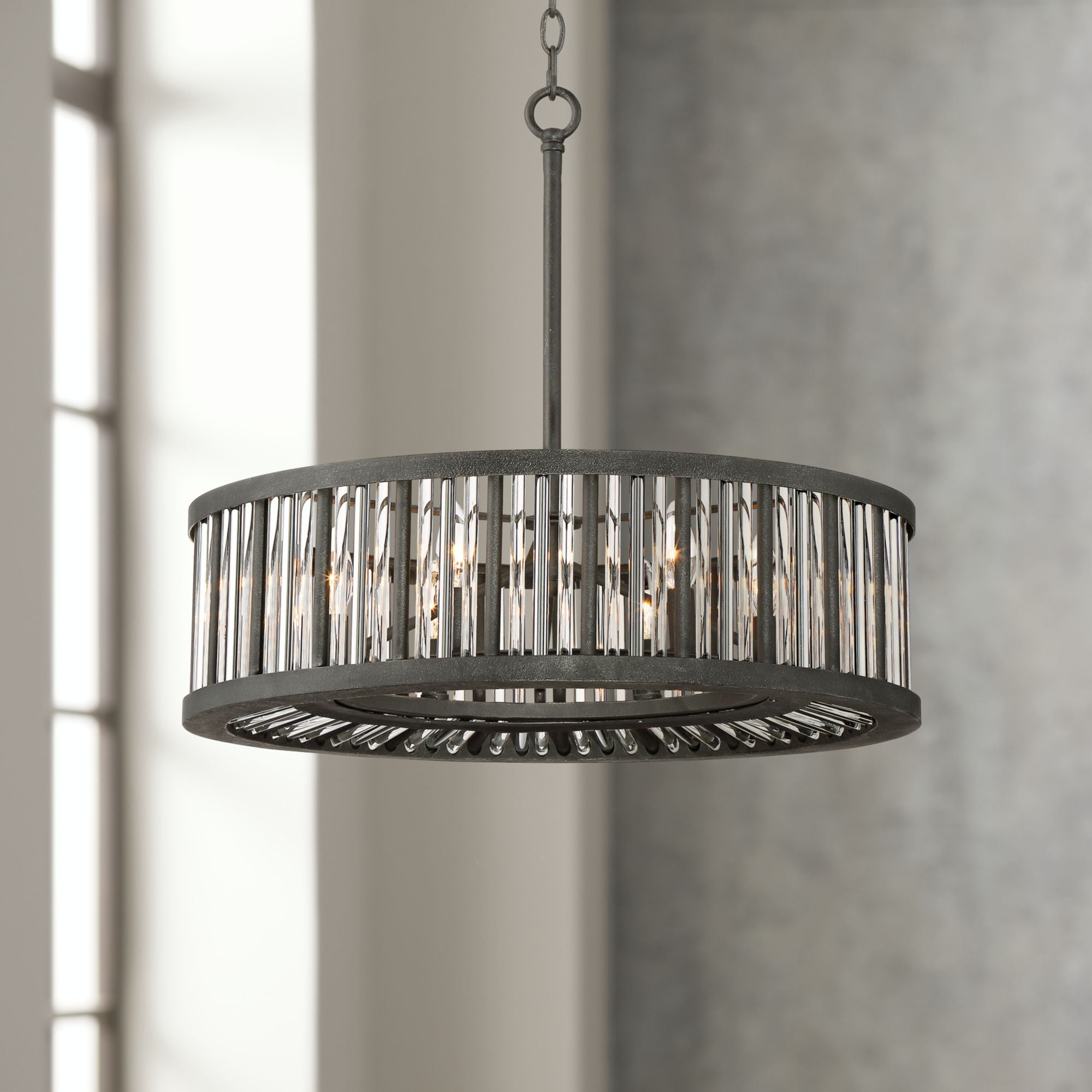 Possini Euro Design Black Silver Drum Pendant Chandelier 24 Wide
