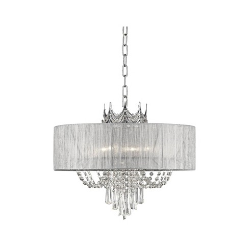 Jolie Chrome Drum Chandelier 20 Wide Modern Crystal Silver Fabric