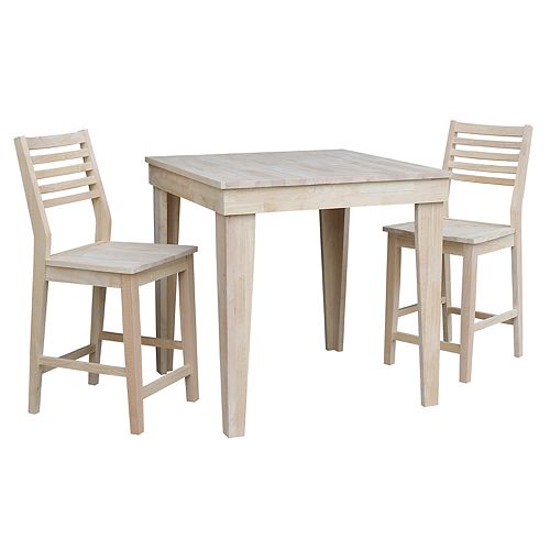 International Concepts Unfinished Dining Table Counter Stool 3 Piece Set