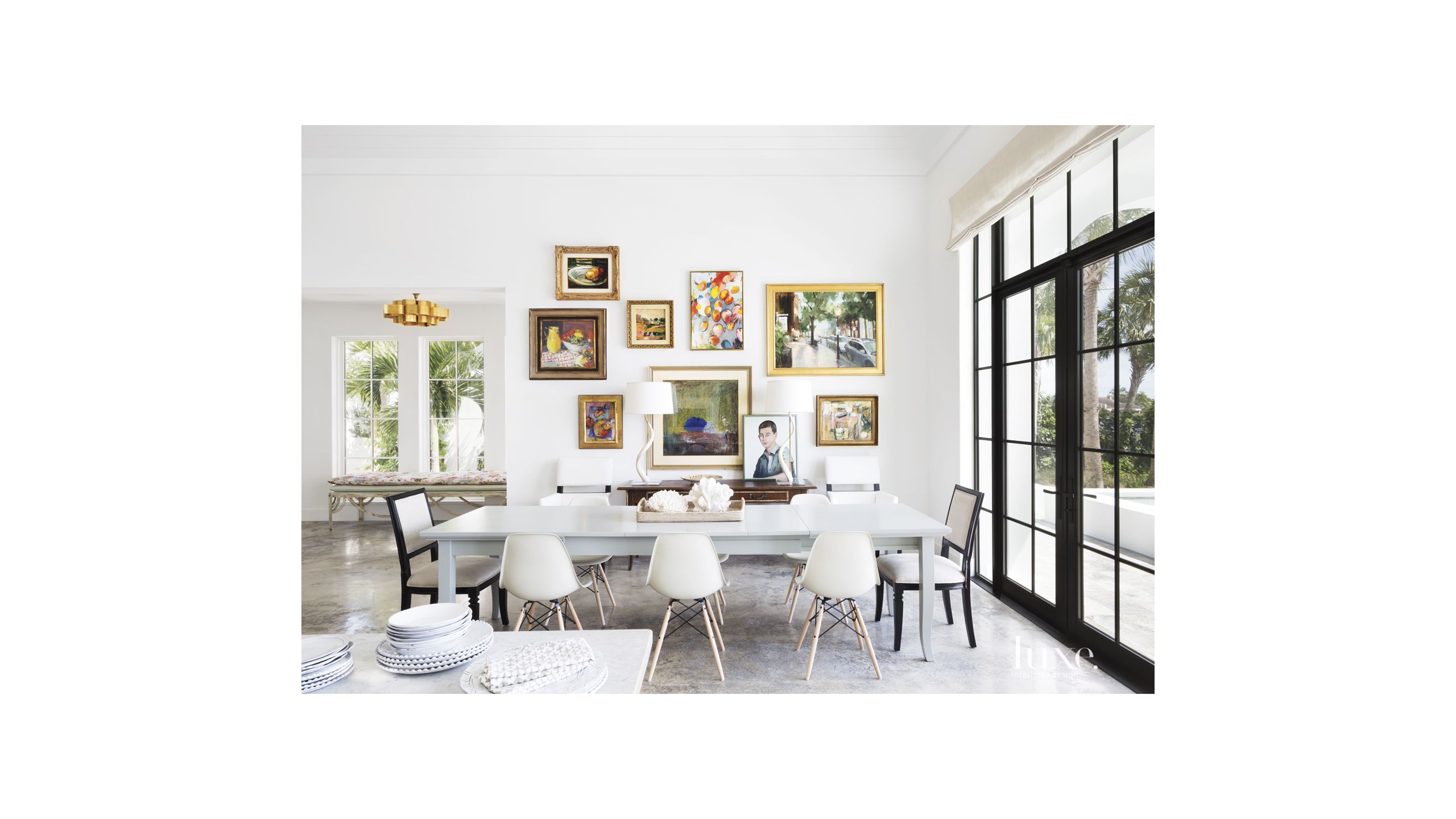 Modern White Dining Room With Gallery Wall Luxe Interiors Design