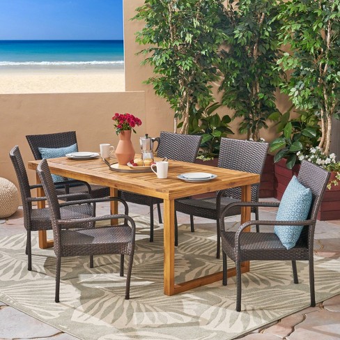 Mayhill 7pc Acacia Wood And Wicker Dining Set Brown