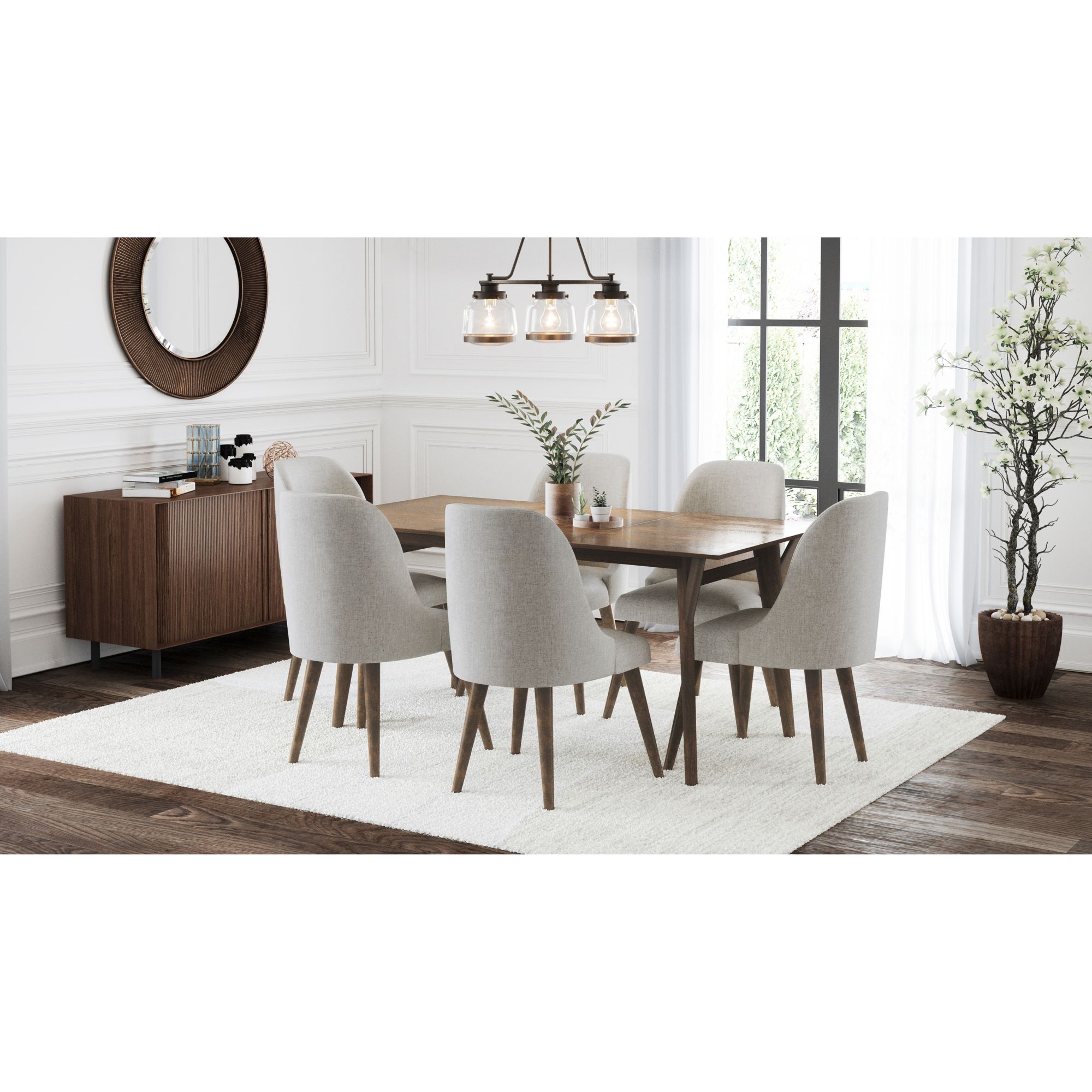 Abbyson Living Regina 7 Pc Mid Century Wooden Dining Set Brown